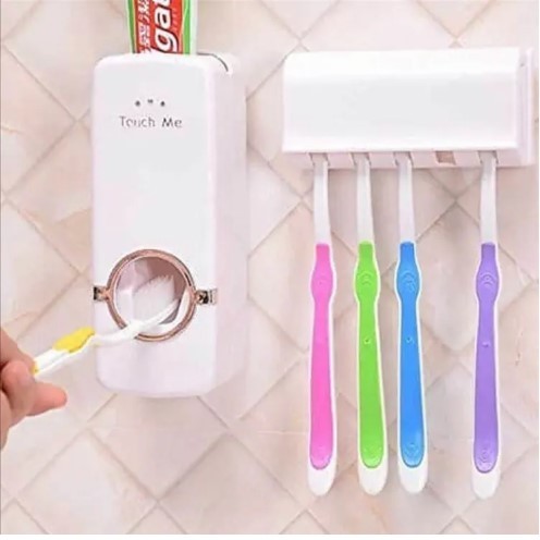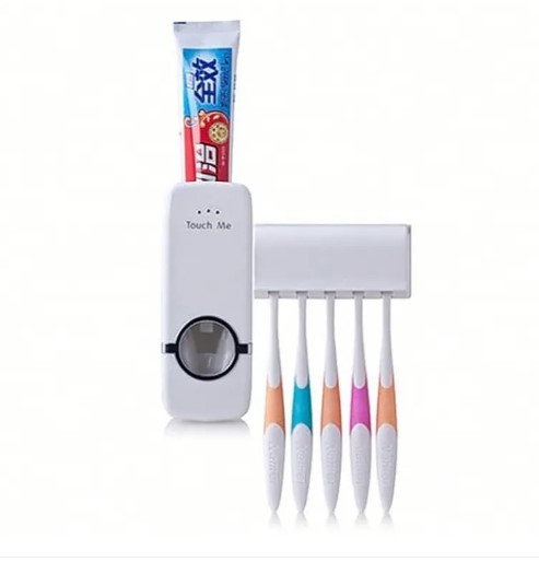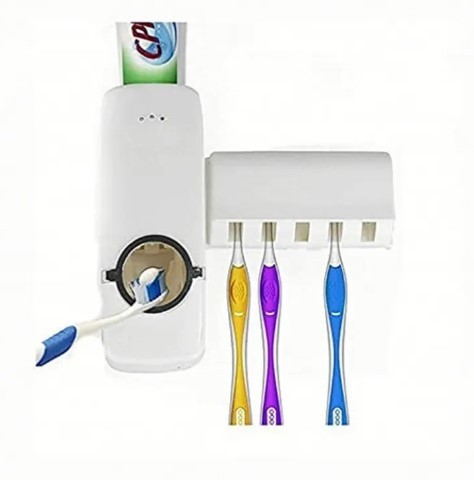 Introducing the Toothpaste Dispenser Plus Toothbrush Holder, a convenient solution for organizing your bathroom counter. This sleek dispenser not only holds your toothpaste but also accommodates multiple toothbrushes, keeping them neatly in place. The modern design and easy-to-use functionality make it a perfect addition to any bathroom. Say goodbye to messy countertops and hello to a clutter-free space with this practical bathroom storage solution.